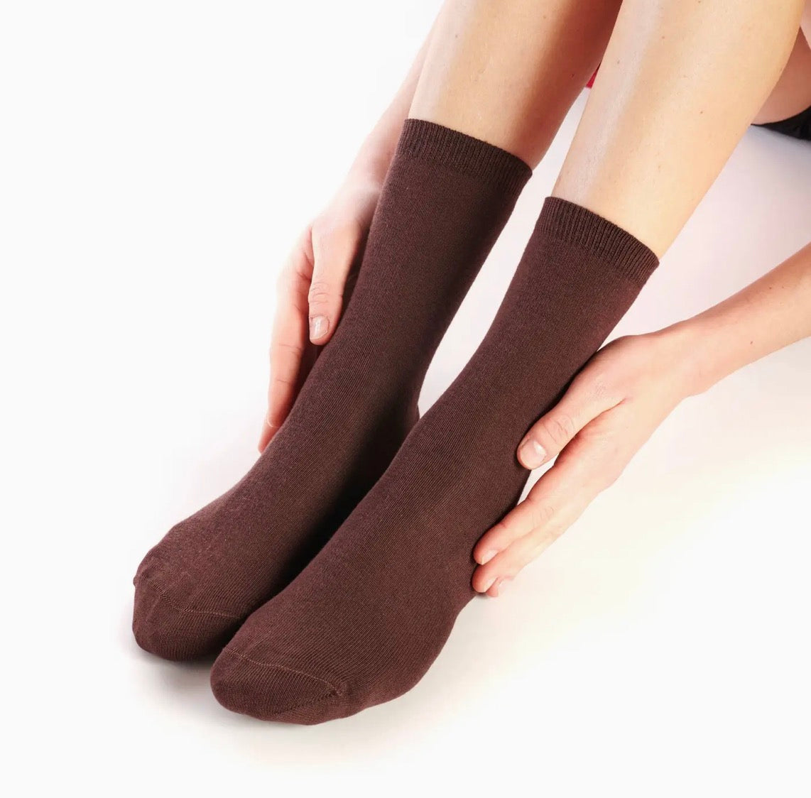 Calzini semplici a metà polpaccio realizzati principalmente in cotone biologico. Bordo doppio per un maggiore comfort. Taglia unica per donna: 36/41. Lavabile in lavatrice a 30°.