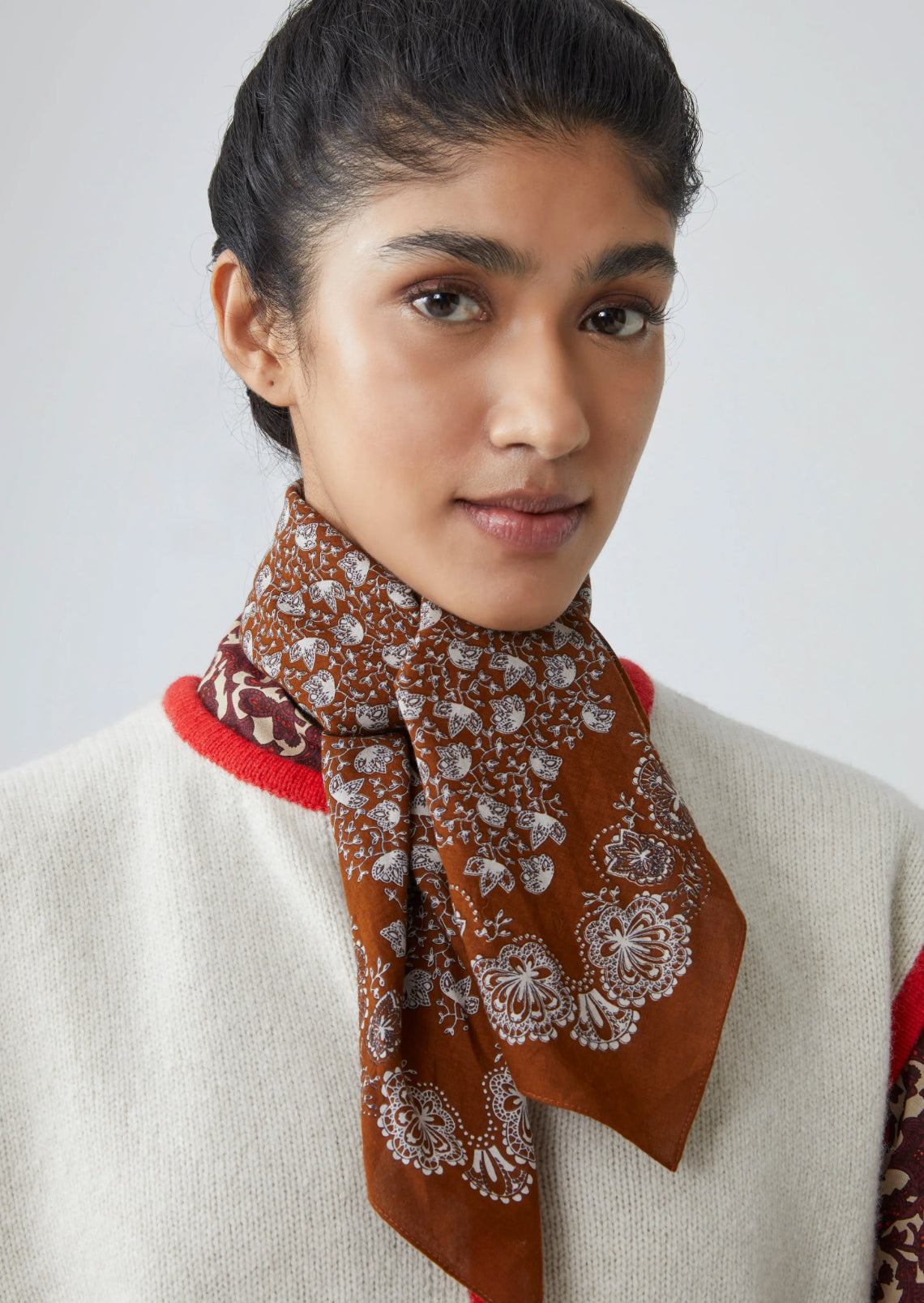 Realizzato in 100% cotone, ha un formato quadrato di 65 x 65 cm, ideale per una portata facile e versatile. Questa sciarpa bicolore unisce un colore unito a sottili motivi ecru, per un'armonia morbida e raffinata.