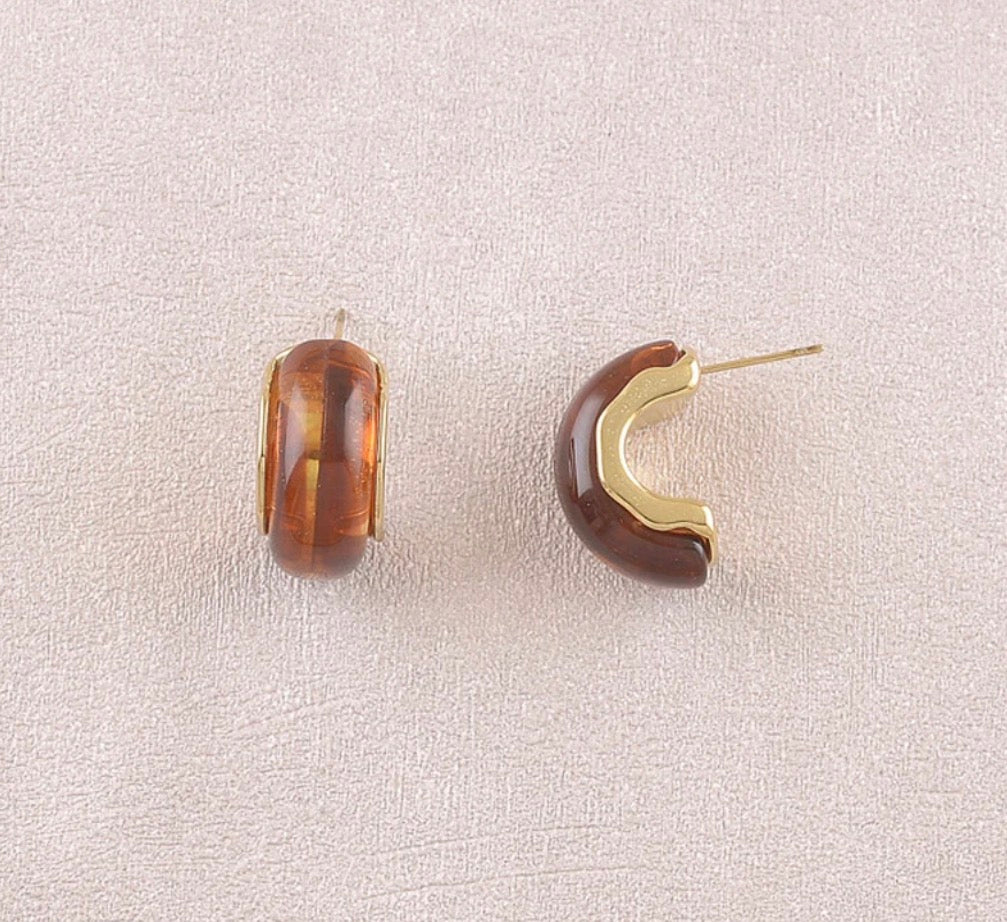 Orecchini a cerchio mezzaluna in resina e metallo.