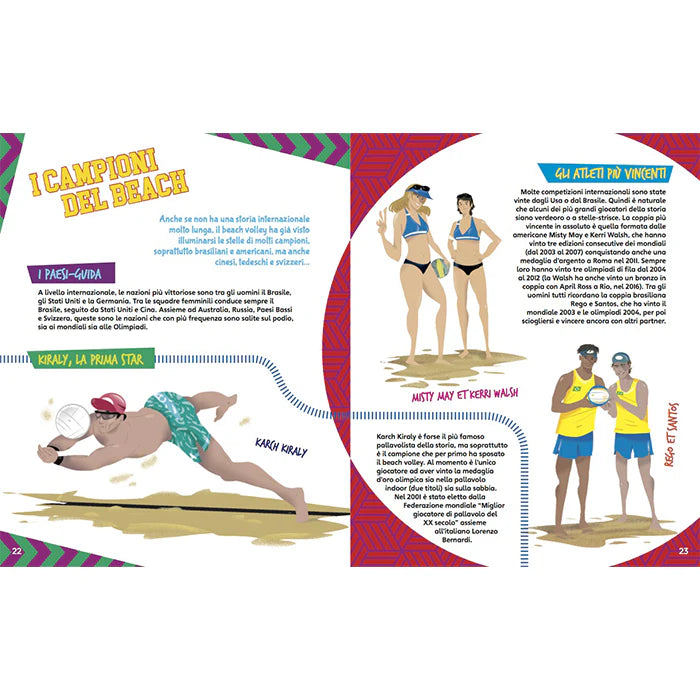 Disegni divertenti e colorati spiegano i concetti principali, illustrati a metà tra gioco e didattica: oltre alle informazioni di base utili per iniziare e ai fondamentali (palleggio, bagher, schiacciata), vengono presentati tanti esercizi per imparare le basi della pallavolo e migliorare la tecnica.