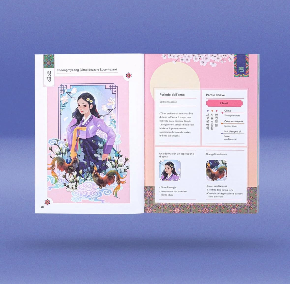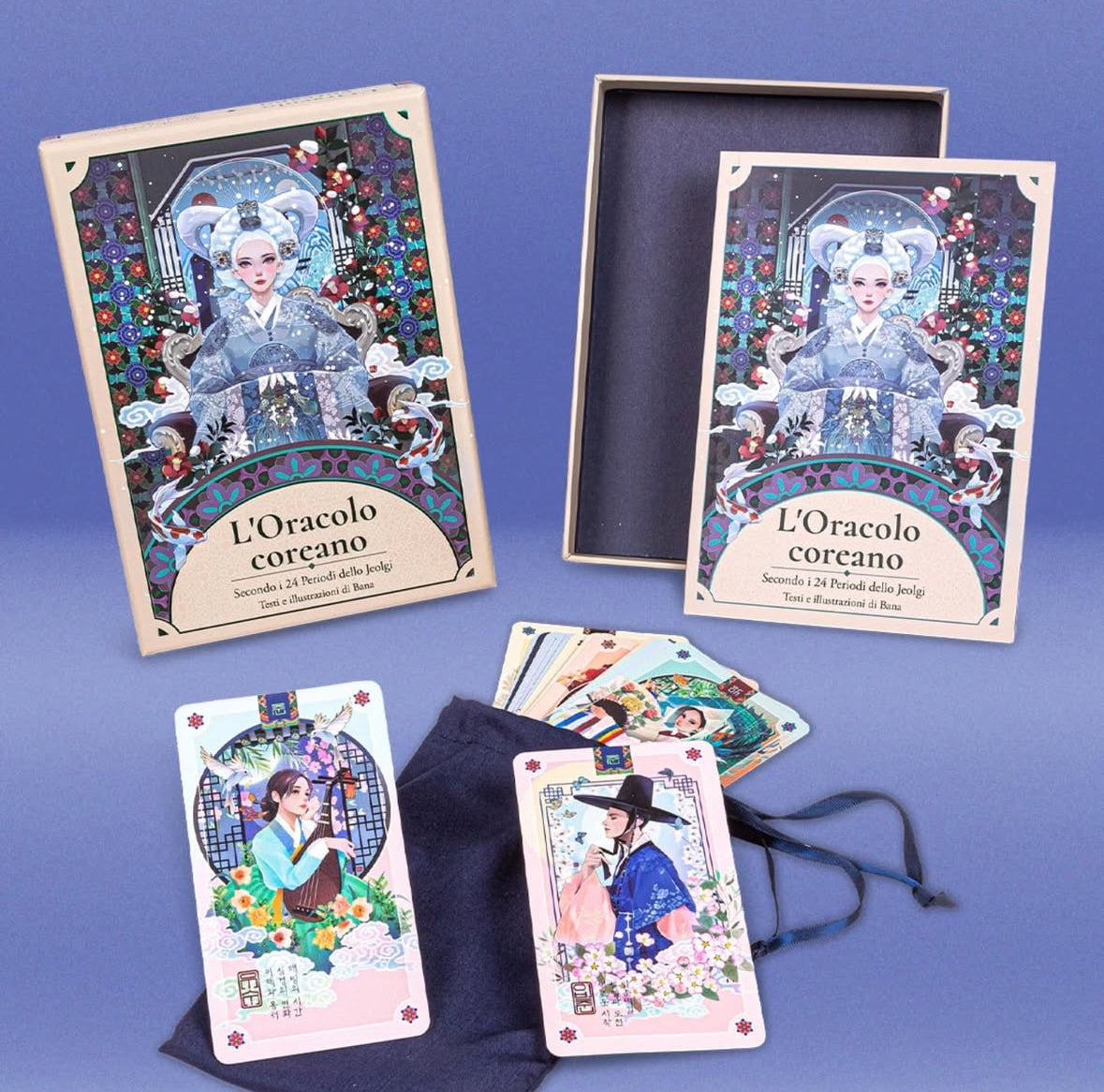 Un oracolo ispirato al folklore coreano costruito sulle “24 stagioni dell’anno”, note come “Jeolgi” in Corea. Le 24 carte sono illustrate in base agli elementi stagionali, al tempo atmosferico e alle relative usanze nell’arco dell’anno; sul retro, compare la tradizionale carta delle costellazioni stellari sviluppata durante la dinastia Joseon dal re Sejong il Grande nel XV secolo. Le istruzioni per la lettura delle carte sono fornite nel libro, che contiene le interpretazioni dei testi coreani riprodotti sulle carte, nonché i ritmi delle stagioni e i loro significati. Il volume include anche storie sulle usanze, le origini e le leggende legate alle benedizioni stagionali.