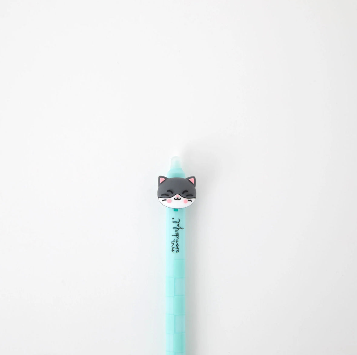 Penna cancellabile con un gatto Mr. Wonderful all’estremità. Colore dell’inchiostro: blu.