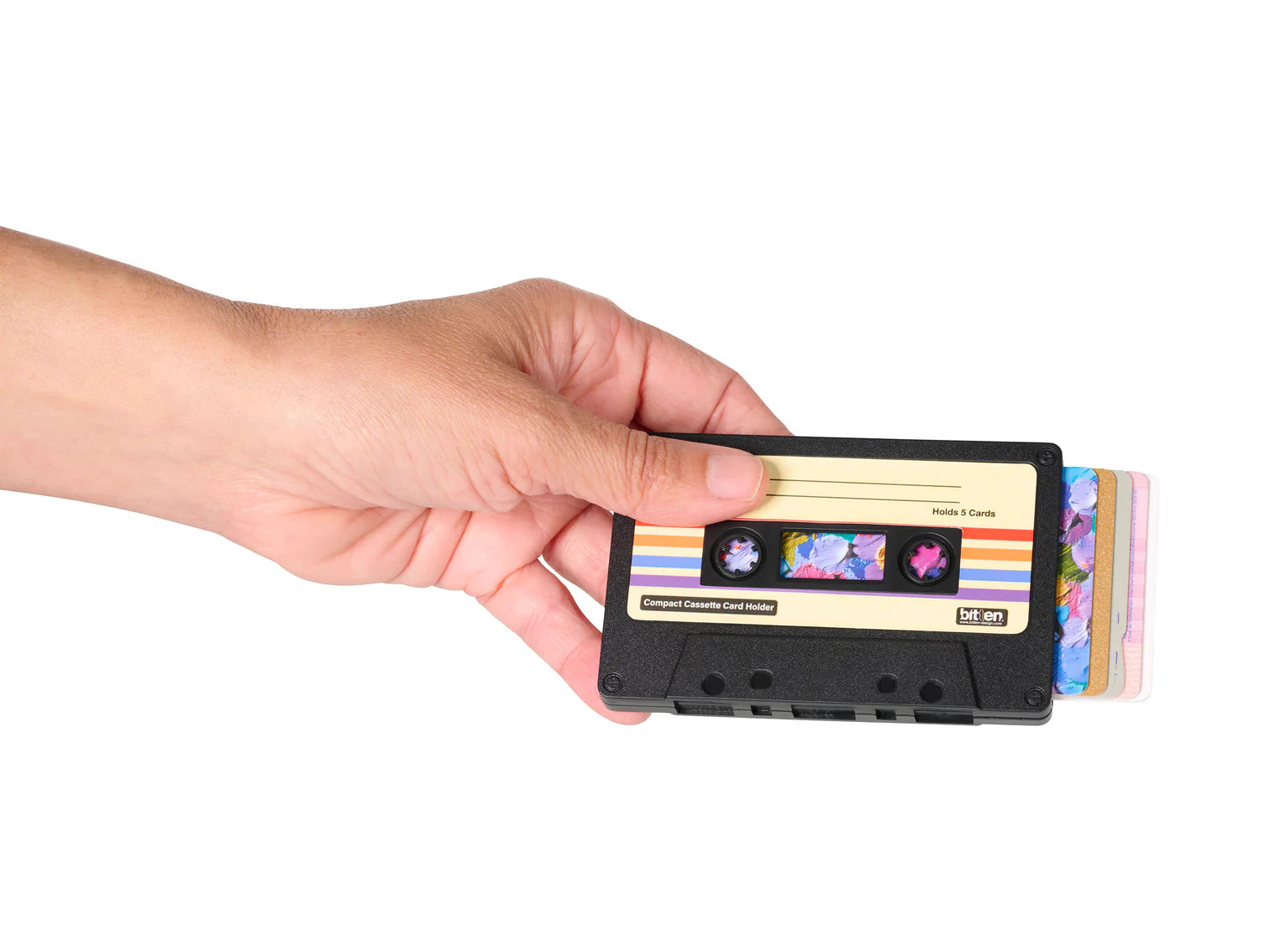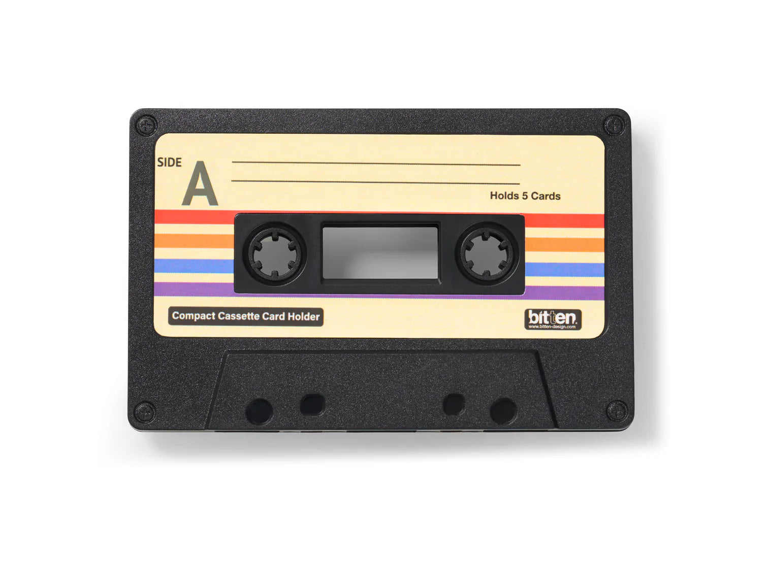 Perfetto per gli spostamenti : compatto e resistente, il porta carte Cassette si adatta facilmente alla tasca o alla borsa, rendendolo ideale per chi ama un accessorio funzionale con un tocco divertente. Che tu stia andando al lavoro o uscendo per una serata in città, questo porta carte è la soluzione ideale per te.