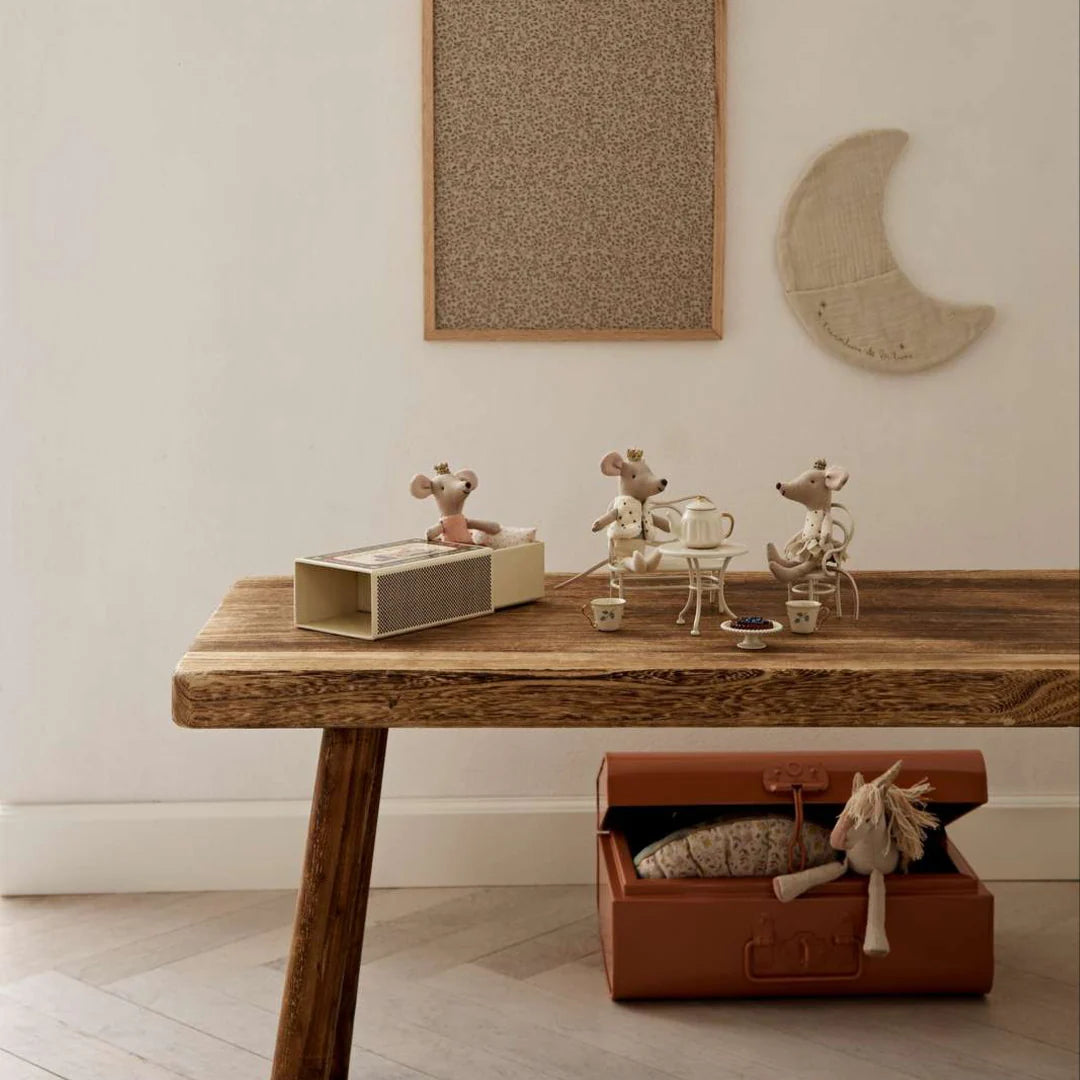I topolini gemelli reali sono una piccola principessa e un piccolo principe. Indossano corone dorate e abiti eleganti. Dormono in una graziosa scatola di fiammiferi decorata con una loro foto sul davanti. All'interno della scatola troverete delle lenzuola morbidissime.