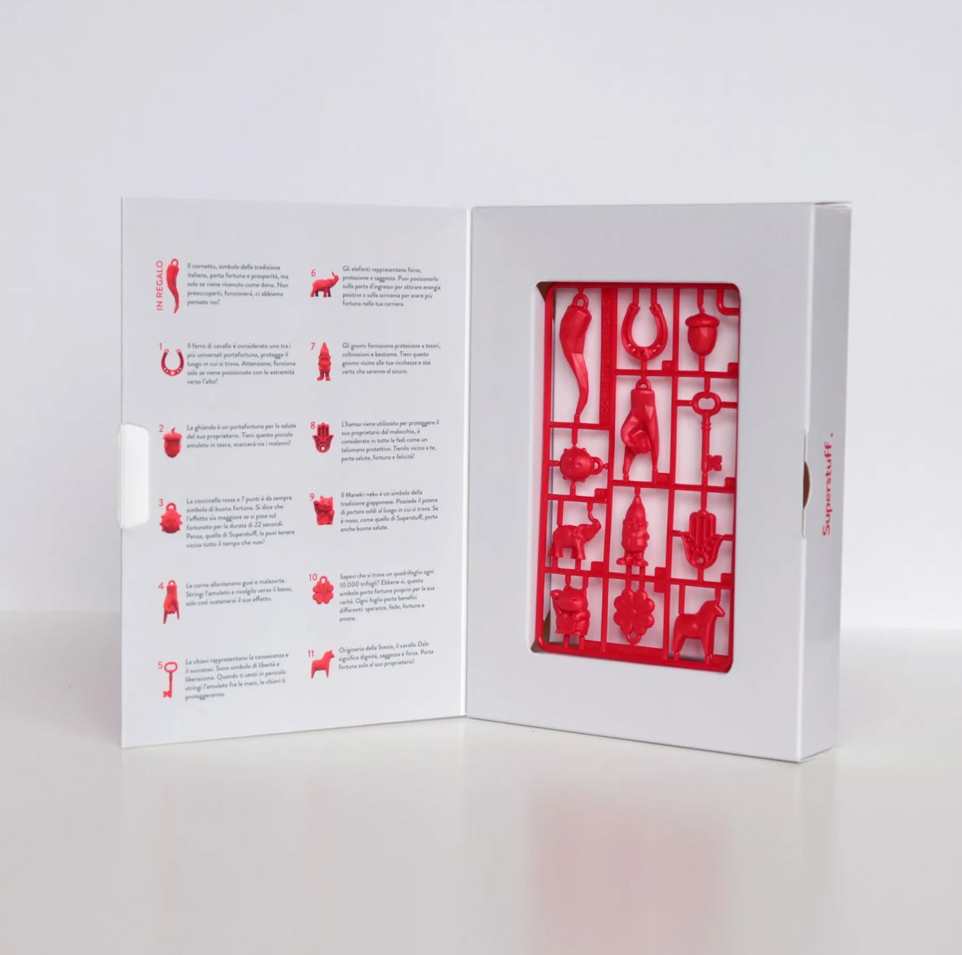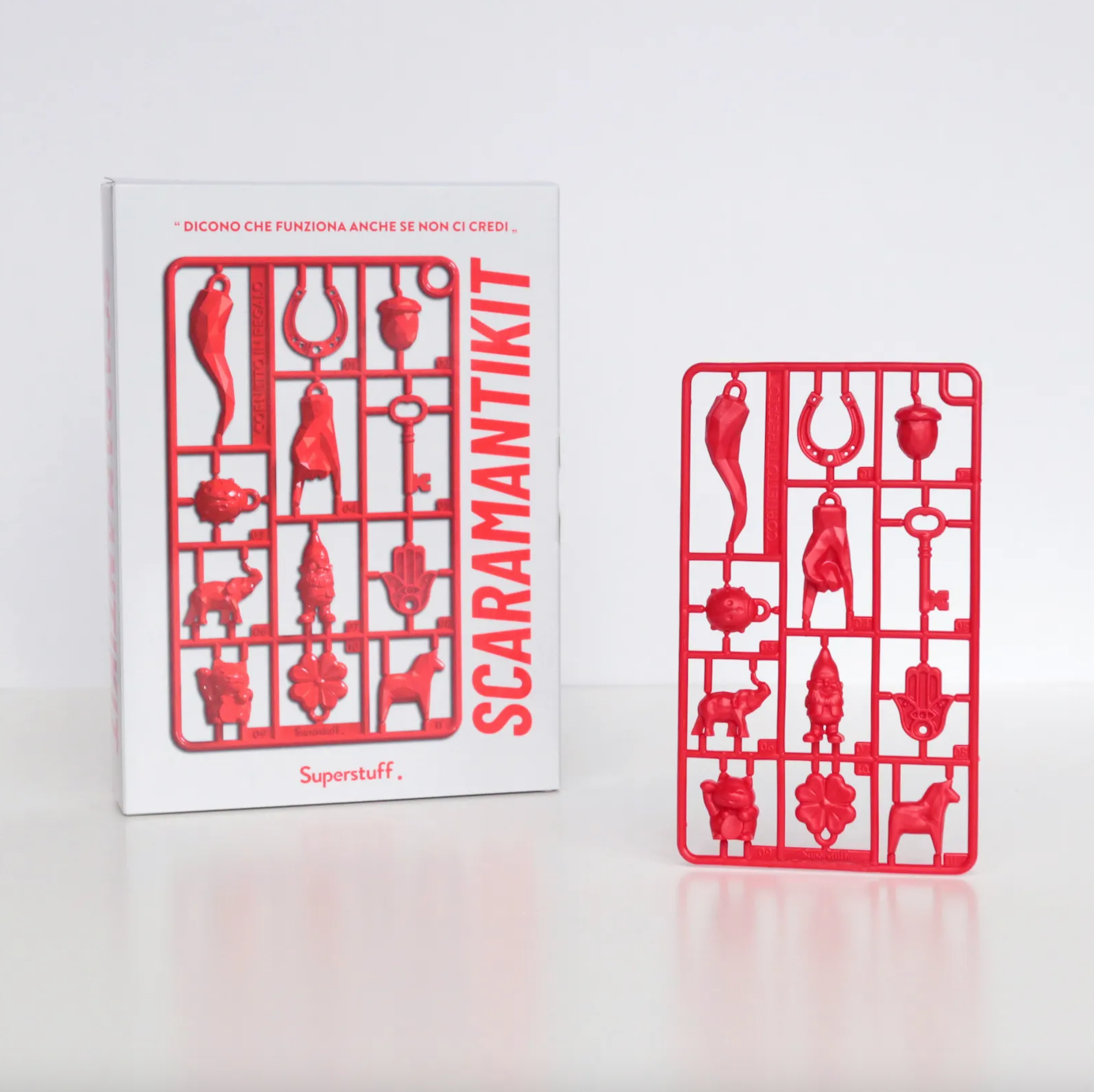 Caccia via le bad vibes con il simpatico Scaramantic Kit! I talismani ispirati ai portafortuna di tutto il mondo porteranno un po' di positività ovunque li posizionerai.