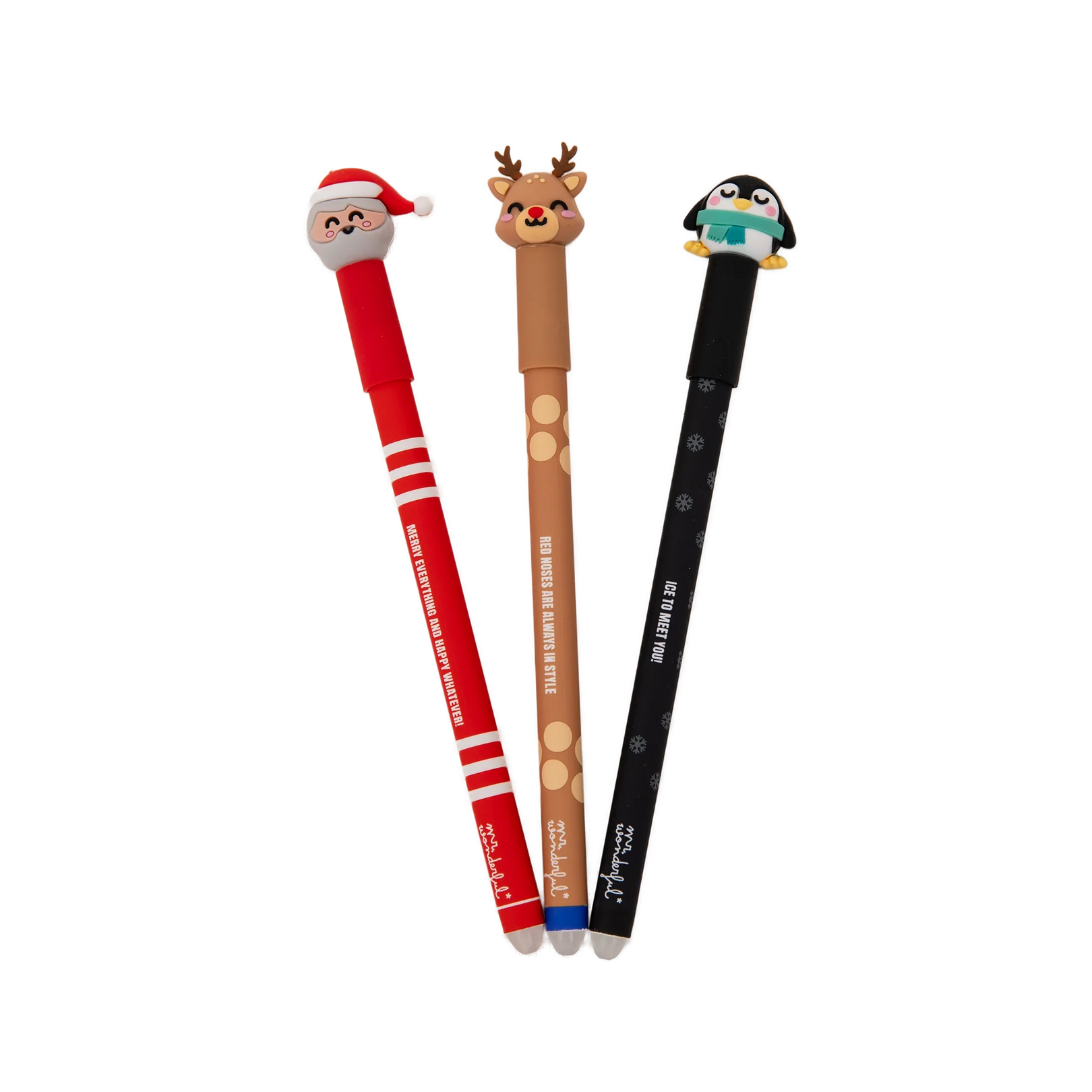 Set di 3 penne cancellabili Bo-Bo, con messaggi e personaggi natalizi. Messaggi sulle penne: