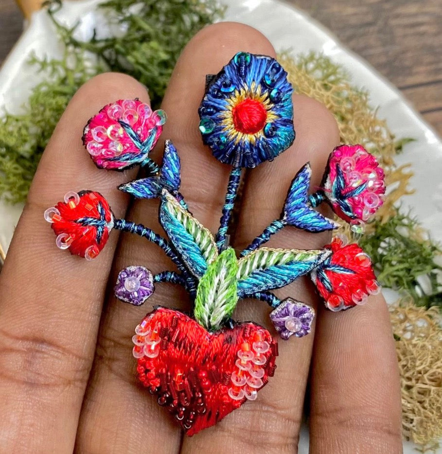 Spilla molto carina per una giacca o una camicia realizzata in feltro. Fatto a mano e intarsiato con diverse perline e pietre. La spilla è un vero colpo d'occhio ed è di nuovo di moda.
