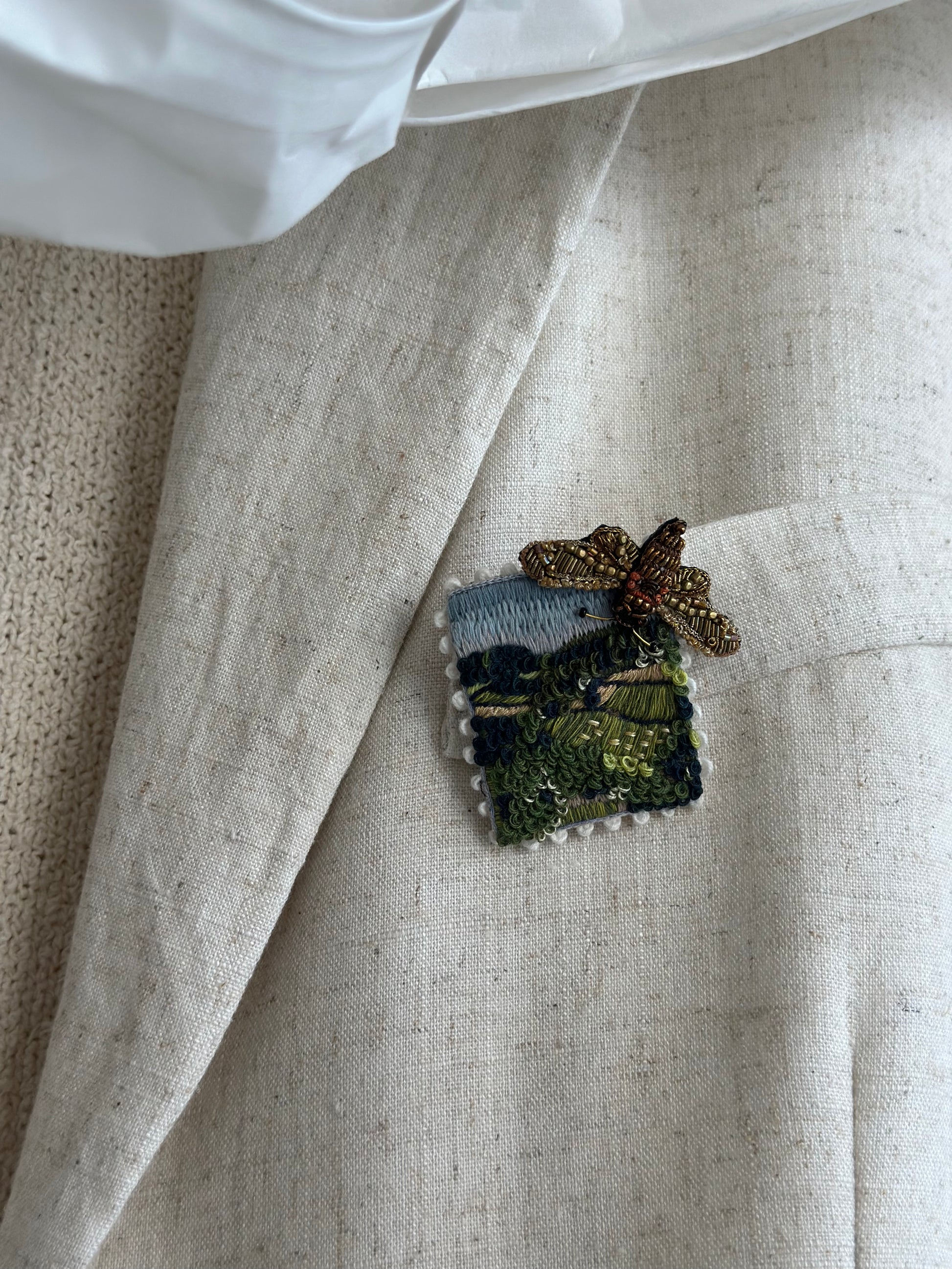 Spilla molto carina per una giacca o una camicia realizzata in feltro. Fatto a mano e intarsiato con diverse perline e pietre. La spilla è un vero colpo d'occhio ed è di nuovo di moda.